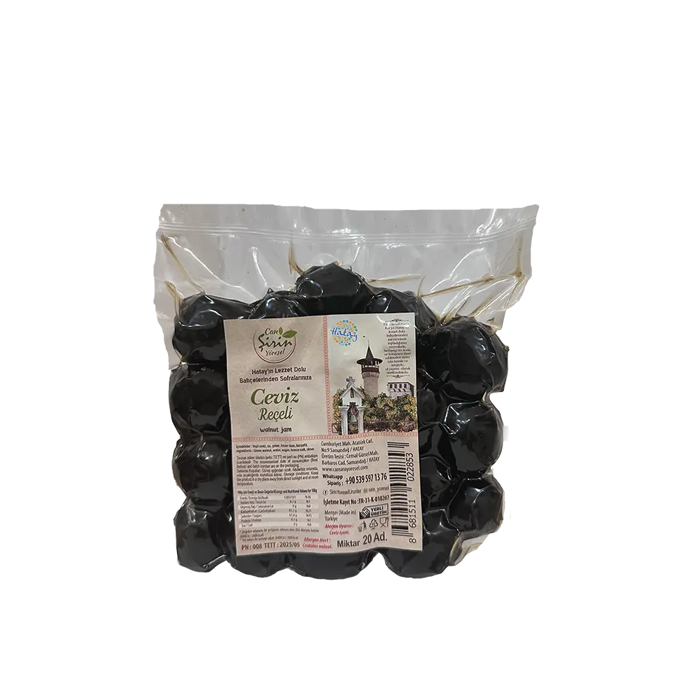 Lezzetli cevizlerin tadını çıkarın! Bu nefis ceviz reçeli, 450g'lık boyutu ile sofralarınıza lezzet katacak.